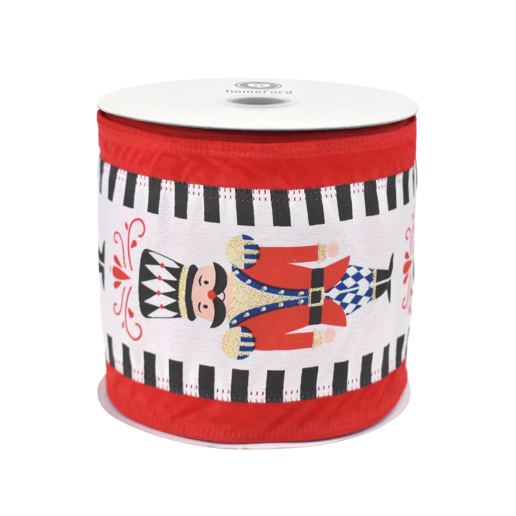 Christmas Nutcracker Dash Velvet Edge Wired Ribbon, 10-yard