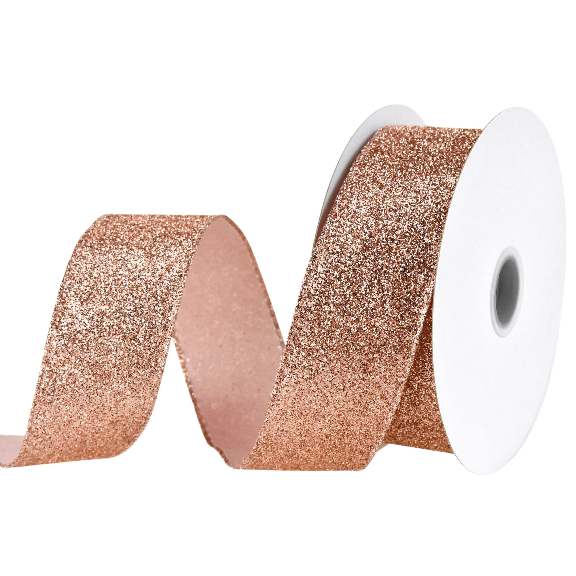 Christmas Rose Gold All Glitter Wired Ribbon, 1-1/2-Inch, 10-Yard